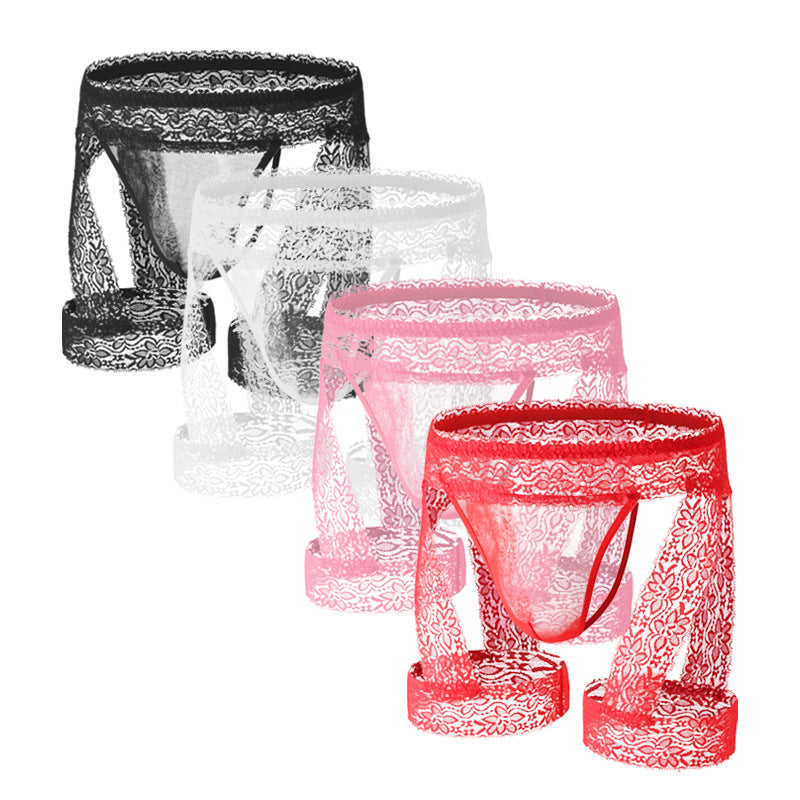 Men's Lace Tirm Bulge Pouch G-String Underwear with Garter