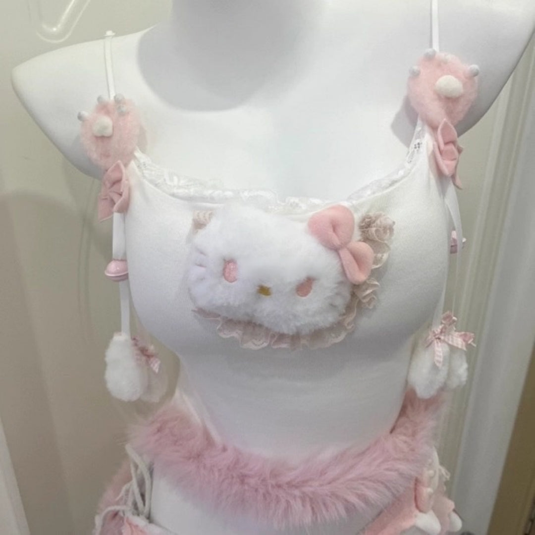 Cute Kitten Suspender Jeans Sexy Lingerie Set