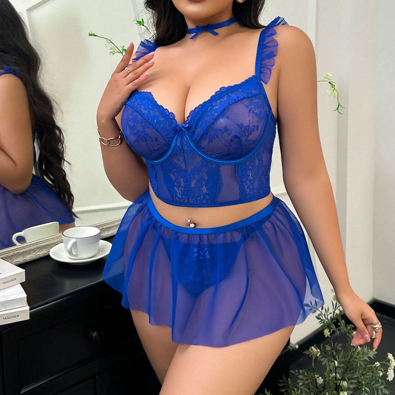 Large Size Sexy Three-point Mesh Lace Semi-transparent Sexy Lace Lingerie Set