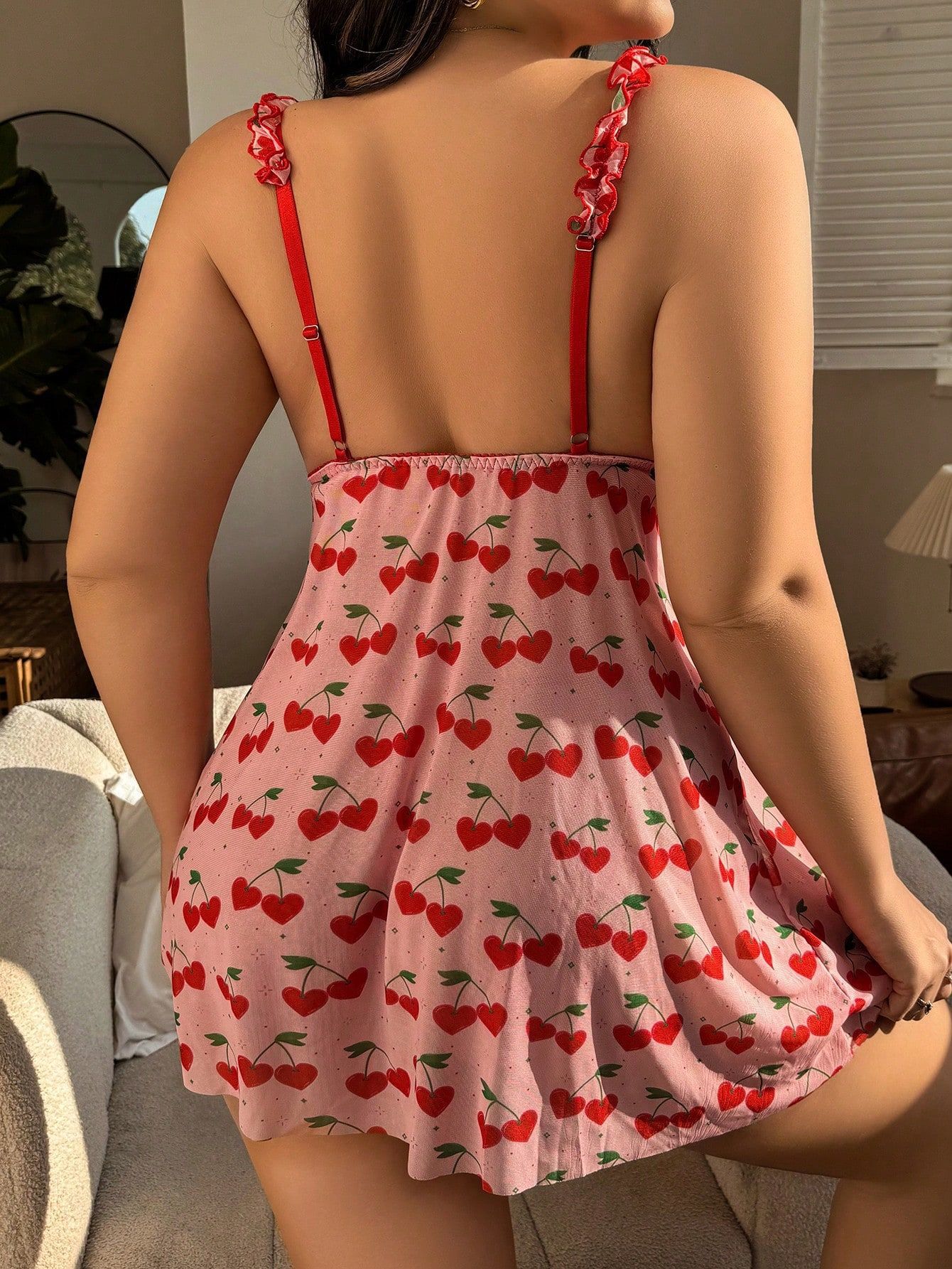 Plus Size Sexy Seduction Lace Mesh See-through Slip Dress Set