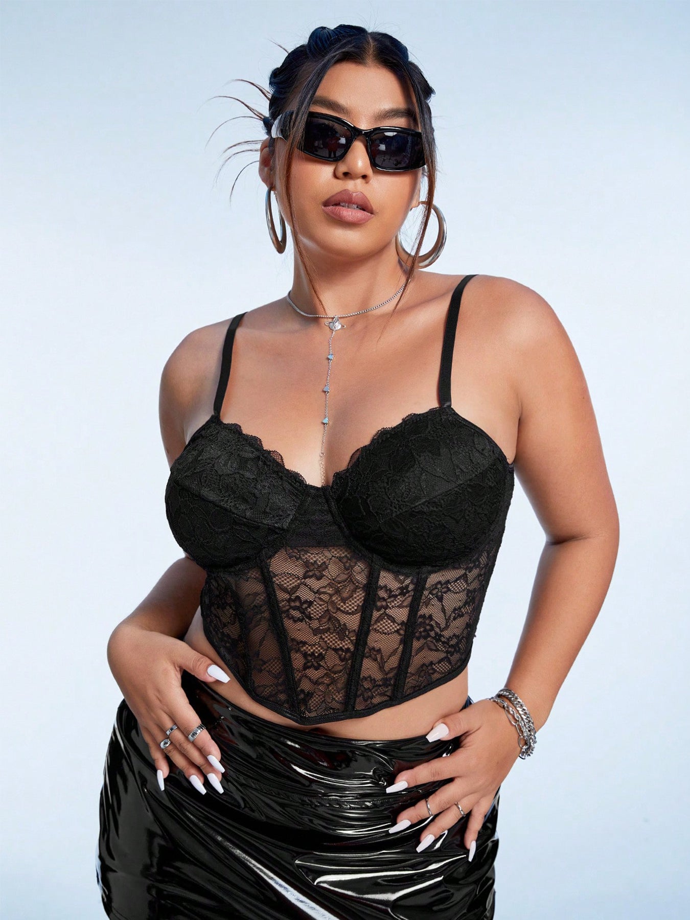 Plus Size Camisole Tube Top Lace See-through Women's Top