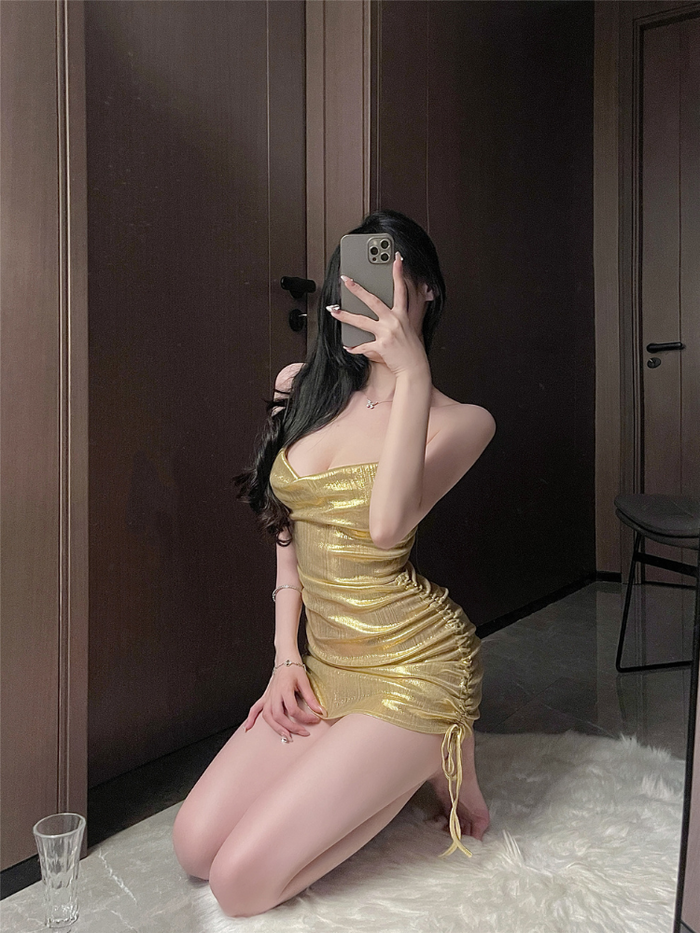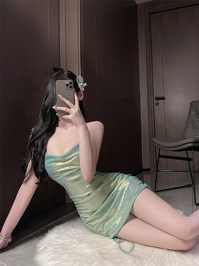 Ruched Metallic Halter Slip Dress Set