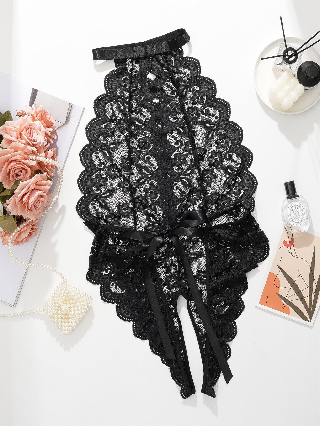 Plus Size Sexy Sheer Lace Halter Bodysuit